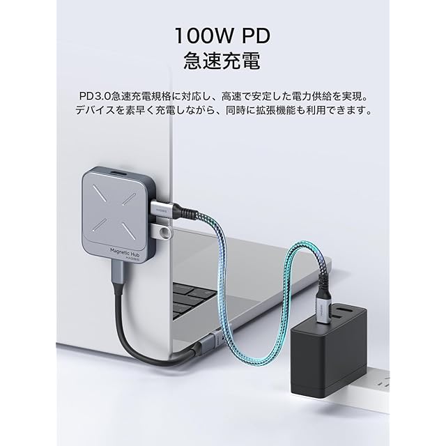Hagibis 磁気USB-Cハブ 7-in-1 Magsafe対応 ドッキングステーション|iPhone 16/15 Pro Max & MacBook Pro/Air対応|4K@60Hz HDMI・100W PD急速充電・10Gbps USB・SD/TFカードリーダー・AUX