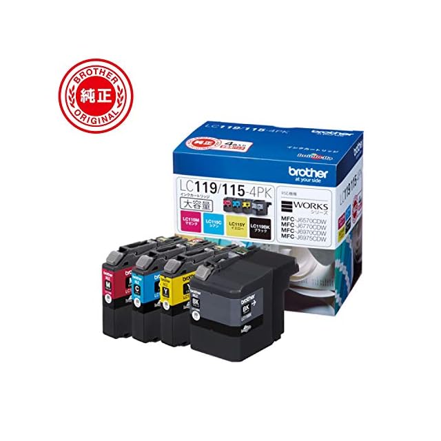 商品名:【brother純正】 ブラザー工業(Brother Industries) インクカートリッジ4色パック(大容量) LC119/115-4PK 対応型番:MFC-J6973CDW、MFC-J6770CDW、MFC-J6573CDW 他