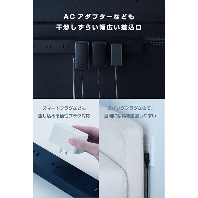 デッドスペースの活用で空間すっきり。テレビやディスプレイの裏に取り付けられる8口の電源タップです。ホコリが溜まりやすい床のお掃除もスムーズに。テレビ裏の配線を整理し、お部屋の綺麗をキープします。