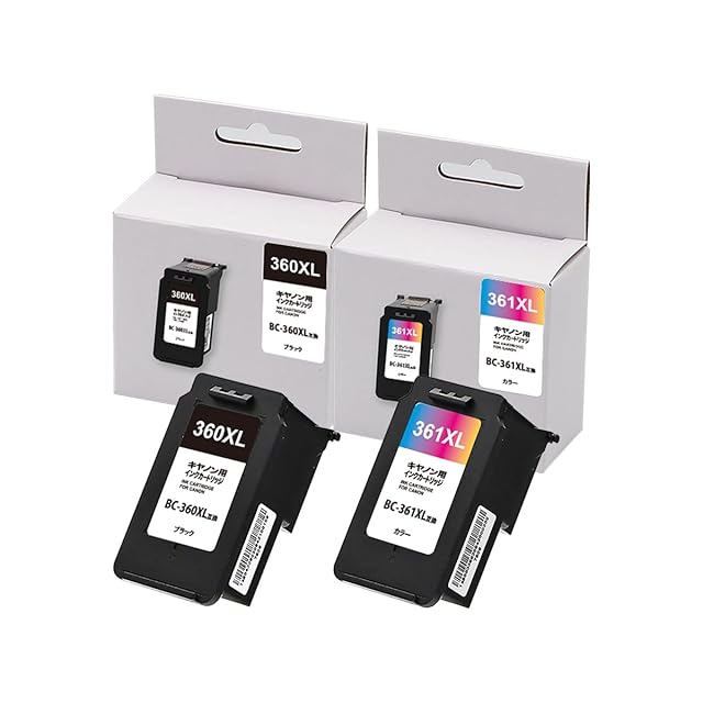 商品名:キヤノン用 BC-360XL 互換 + BC-361XL 互換 2個セット ブラック+3色カラー 大容量 互換インク 残量表示対応 PIXUS TS5430 / TS5330