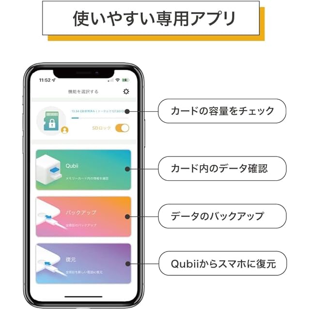 【Qubii Duoがあれば写真取り放題】寝る前にスマホ充電するだけでiPhoneの写真や動画を自動バックアップ!Qubiiがあれば、iPhoneの容量不足には困らず、写真を気兼ねなく取り放題!使いやすくて高速転送。簡単操作で手軽にiPhoneの写真をパソコンにデータ移行することも可能。