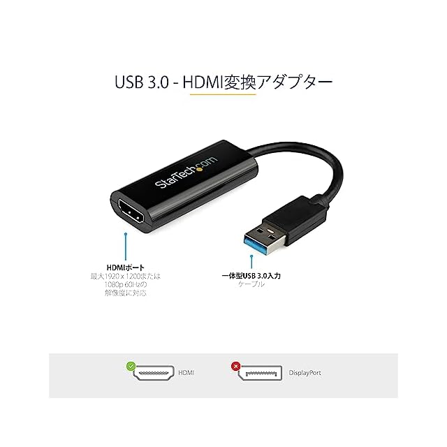 商品名:StarTech.com USB 3.0対応HDMIディスプレイアダプタ/1080p対応/USB Type-A接続/スリムタイプ/Windowsのみ対応 USB32HDES