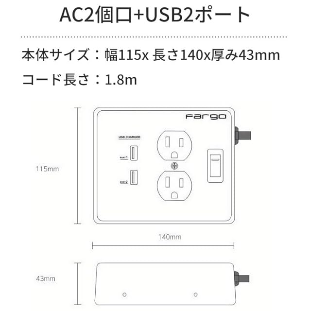 商品内容:AC2個口USB付き