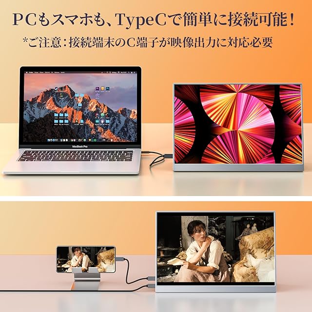 【ご注意・安心のアフターサービス】①現行品はSamsungのDEXモードではタッチの位置がずれます。ミラーリングではずれません。iPhoneと繋ぐ場合、タッチパネルは機能しません。また、MacBookと繋ぐ場合、マルチタッチ操作ができません。②Type Cケーブル一本で接続する場合、接続の端末がDP ALT MODEに対応しなければなりません。③接続の端末から電源を取る場合、端末の電力低下で給電不足になることもあります。この場合、電源アダプターで給電してください。④switch 2とはTypeCで接続不可です、ドックを利用してHDMIで接続してください。⑤HDR/DCRがオンになっている場合、輝度などが調整なくなります。HDR/DCRをオフにすれば調整できるようになります。⑥使用上に何か不明点がございましたら、随時ご連絡ください。メールと電話で対応可能です。