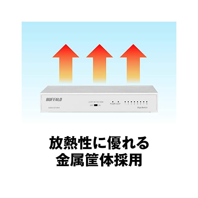 商品名:バッファロー BUFFALO Giga対応 金属筐体 電源内蔵 8ポート LSW6-GT-8NS/NWH ホワイト スイッチングハブ 簡易パッケージ マグネット 壁掛け設置対応