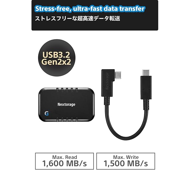 商品名:Nextorage 日本メーカー L字型ケーブル付属 SSD 外付け 4TB USB3.2 Gen2 ゲーミング・モバイル機器向けモデル NX-P2SE Gシリーズ Type-C 最大転送速度1500MB/s ポータブルゲーム機 Windows MacOS PS5 iPhone15/16 Pro iPhone15/16 Pro Max 動作確認済み NX-P2SE4TB/GLEB ネクストレージ