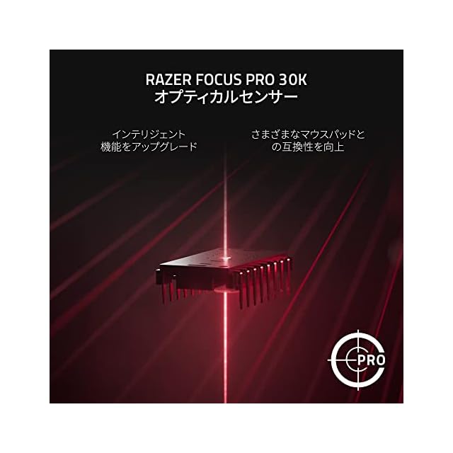 【Razer Focus Pro 30K オプティカルセンサー】前モデルのセンサーより正確なトラッキング/進化したAI機能/ガラス表面にも対応と、究極までに洗礼されたセンサーとなっており、より高い精度でのマウス操作が可能になっています。