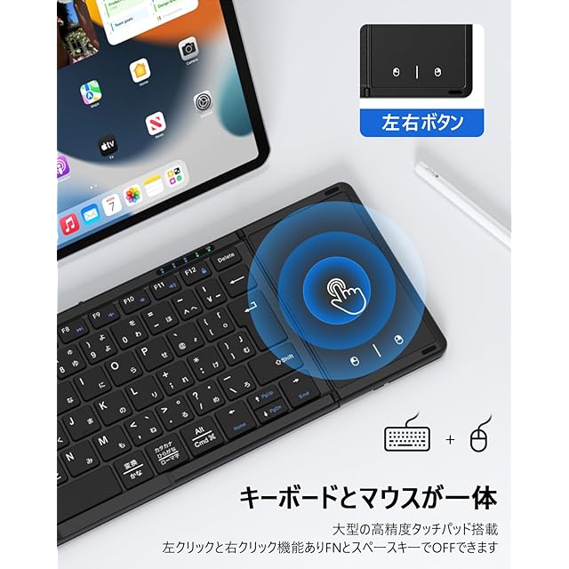 商品名:【最新型】Omikamo キーボード bluetooth 折り畳み式 ワイヤレス JIS標準日本語配列 ipad キーボード スマホ マルチペアリング タッチパッド付き iOS/Windows/Android/Mac/Google対応 無線 コンパクト 軽量 薄型 ipad mini パンタグラフ 充電式 (黒)