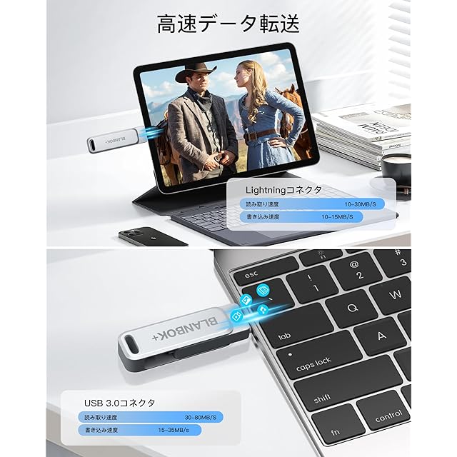 商品名:【MFi認定 大容量】USBメモリ BLANBOK+ 256GB iphone usbメモリ メモリースティック Lightning/type-cコネクタ搭載 容量不足解消 写真保存用 外付けメモリ iPhone17/16/15//14/13 /12/iPad/iPod/Win/Mac兼用