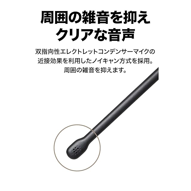 【ノイズキャンセリングマイク内蔵】近接効果を利用したノイズキャンセリング方式により周囲の雑音を抑え、相手にクリアな音声を提供します。また、付属のウインドスクリーンで自分の息によるノイズ(ポップノイズ)もカットできます。