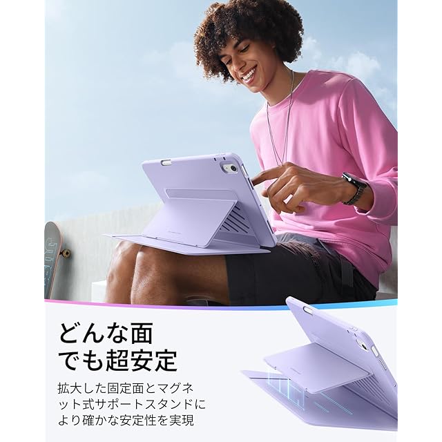 商品名:ESR iPad Air 13インチ ケース (M3/M2、2025/2024) ペン収納 耐衝撃 縦横スタンド 自動ウェイク/スリープ Pencil Pro/USB-C ワイヤレス充電対応 マルチアングルケース Flipシリーズ パープル