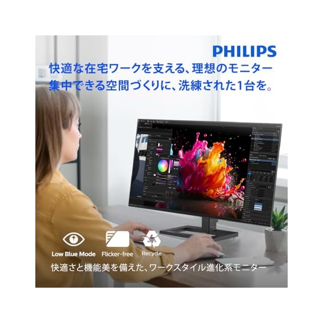 【IPS Technologyパネル】 IPS ディスプレイは、178/178 度の超広視野角を実現する先進テクノロジーを採用し、ほぼどの角度からでもディスプレイを見ることができます。IPS ディスプレイは、標準的な TN パネルと異なり、画像を鮮やかな色彩でくっきりと表示します。このため、写真、映画、ウェブの閲覧だけでなく、色の正確性や一貫した明るさを常に求める専門用途にも最適です。【環境に配慮した水銀フリー】 LED バックライト搭載フィリップスモニターは、人間と動物に対して極めて毒性が高い天然物質の 1 つである水銀を含みません。したがって、製造から廃棄までのライフサイクルを通して、環境にやさしいディスプレイです。