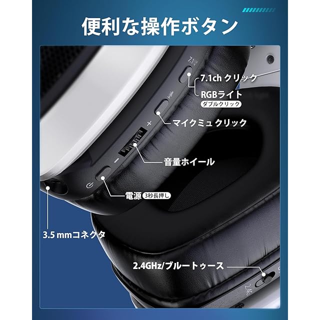 商品名:Tatybo ゲーミングヘッドセット ワイヤレスヘッドセット マイク付き 軽量 7.1ch <25ms超低遅延 音画同期 高遮音性イヤーカップ 30時間連続使用可能 RGBライト【5.3 Bluetooth/USB-A/USB-C】 Switch PS5 PS4 Windows Mac スマートフォン対応 ヘッドホン WT5白