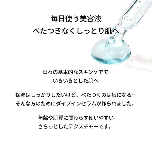 角質層まで浸透し、うるおいに満ちた水潤肌へと導く「ダイブインセラム」。