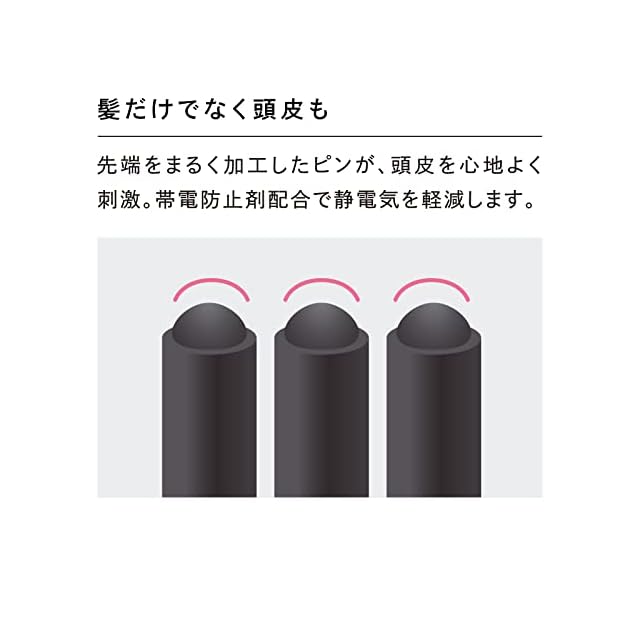 【髪だけでなく頭皮も】先端をまるく加工したピンが、頭皮を心地よく刺激します。