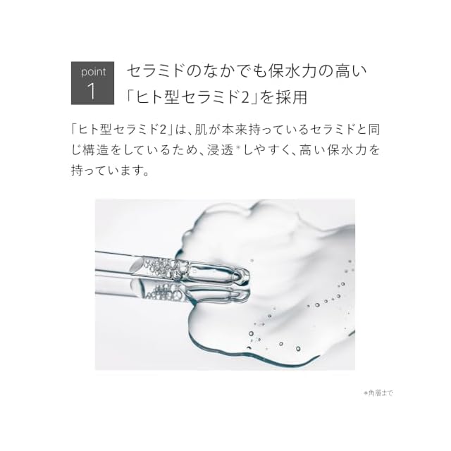 ヒト型セラミドを高濃度4.5%配合した乳液です。乾燥により、ゆらぎやすい肌を高い保湿力でケア。肌のバリア構造と同じヒト型セラミドが、荒れにくい肌へと導きます。さっぱりした感触なのに肌を濃密なうるおいで満たし、年齢肌対策にも最適です。