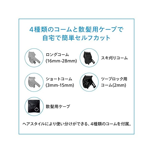 27段階の長さ調節でお好みの長さでヘアーカット.2 mm~28 mm のカットの長さより、 1 mm刻みで細かく長さを調節可能。 ※ツーブロック用コームを使用すると2 mm にトリミング。 ※コームを外すと 0.5 mm にトリミング。