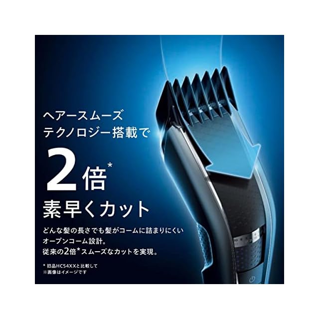 ヘアースムーズテクノロジー搭載で2倍*²すばやくカット 従来の2倍*¹スムーズなカットを実現。 *¹ 旧品HC54XXと比較して