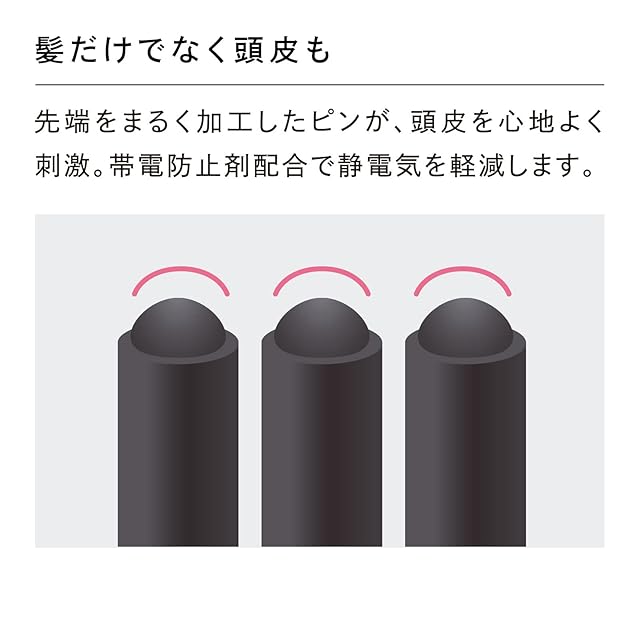 【髪だけでなく頭皮も】先端をまるく加工したピンが、頭皮を心地よく刺激します。