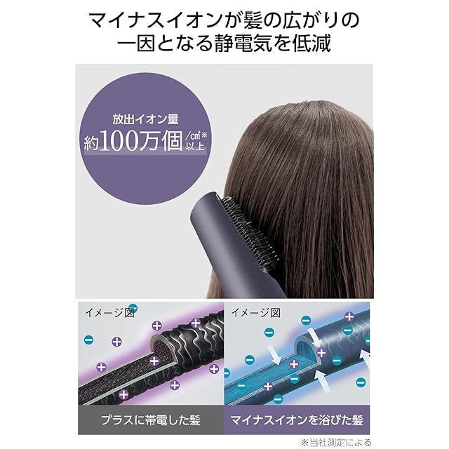 ブラッシングしながらマイナスイオンが髪全体に行き届き、静電気を低減します。 ※当社測定による