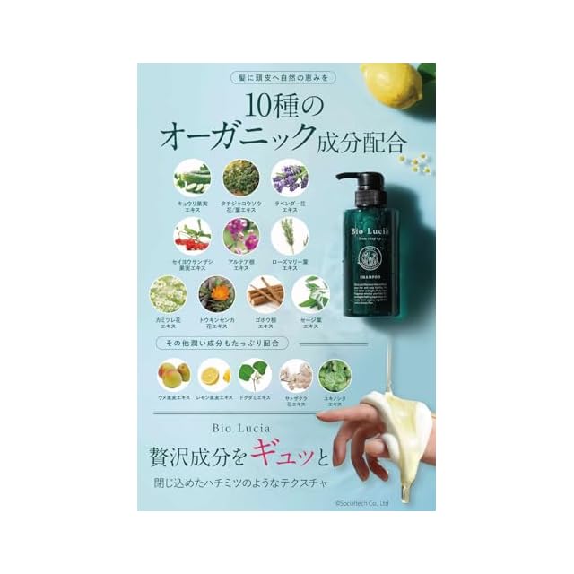 【補修と保湿をこれ1本】 贅沢に配合された10種類のオーガニック成分をはじめ、厳選成分が髪の毛の1本1本と頭皮の角質層にまで浸透し、ダメージ、くせ毛やうねりで広がる髪、絡まりやもつれをケア。頭皮から健康的に整え、まとまりのあるサラツヤ髪をサポートします。