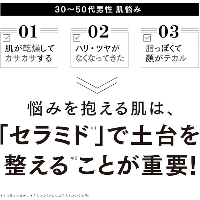 【健康的な肌へ!最初のアドバンテージ。男唯一の“赤のジェリー”*1】うるおいを保持する肌本来の力に着目。独自のナノサイエンスで極小化した保湿成分「Wヒト型ナノセラミド*2」・「ナノアスタキサンチン*3」が角層のすみずみに浸透。ダメージを受けやすい男性の肌*4をつややかに潤うハリ肌へといざなう、化粧水前に使用する新感覚ジェリー状美容液です。【注釈】*1 メンズスキンケアでジェリー状先行美容液を使用すること。 *2 うるおい成分 (セラミドEOP、セラミドNP、セラミドAP) *3 うるおい成分 (ヘマトコッカスプルビアリス油) *4 ひげそり後や日焼けで乾燥しがちな肌。 *5 角層まで