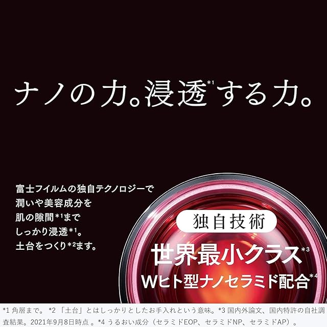 【主な成分1 うるおいを保つWヒト型ナノセラミド*1】ハリやうるおいに満ちた肌を保つには、土台*2となるセラミドのケアが大事。 独自のナノテクノロジーでセラミドを極小化することで、高浸透*3を実現。 【注釈】*1 うるおい成分(セラミドEOP、セラミドNP、セラミドAP) *2 しっかりとしたお手入れという意味 *3 角層まで。当社比 【ご使用方法】①適量パール粒大を手に取り、手のひらでジェリーを軽く伸ばす。②手のひらで顔全体をあたためるように包み込み、ジェリーを肌になじませる。