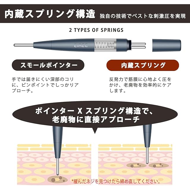 ✅【バネ音が気にならない静音設計&高い耐久性】 静音性やスムーズさ高い耐久性の実現には、伝統高い技術を使用します。長時間使用しても手が疲れにくく、金属間の摩擦音を感じることもほとんどありません。専門家との研究で得た特殊なバネの構造により、肌を摩擦、チクチクする感覚することなく一定の加圧を実現。さらに、伸縮を繰り返しても劣化することなく圧力を統一するために、約60万回の耐久テストをクリアしています。