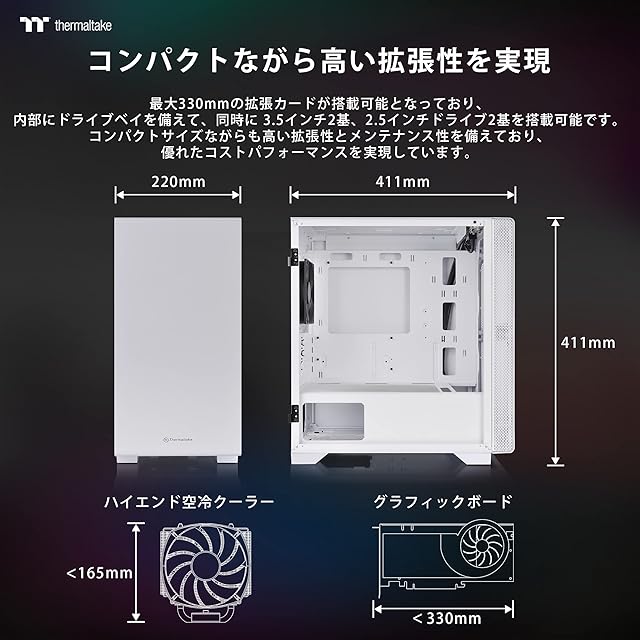 商品名:Thermaltake S100 TG Snow Edition 強化ガラス ミニタワーPCケース ホワイト スイングドアパネル採用 CA-1Q9-00S6WN-00 CS7886