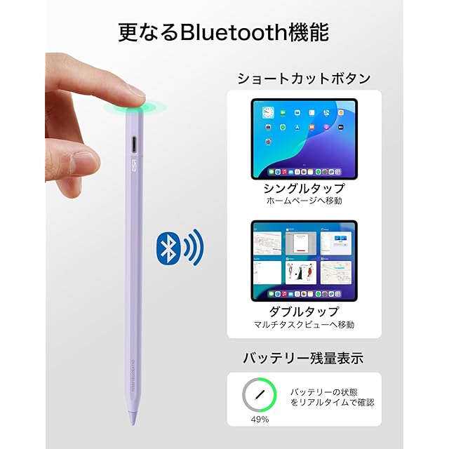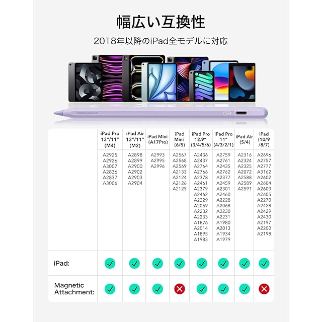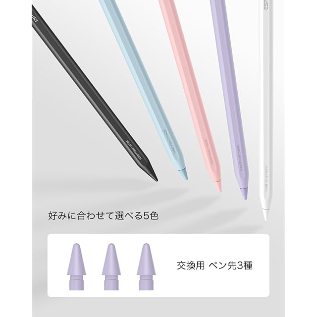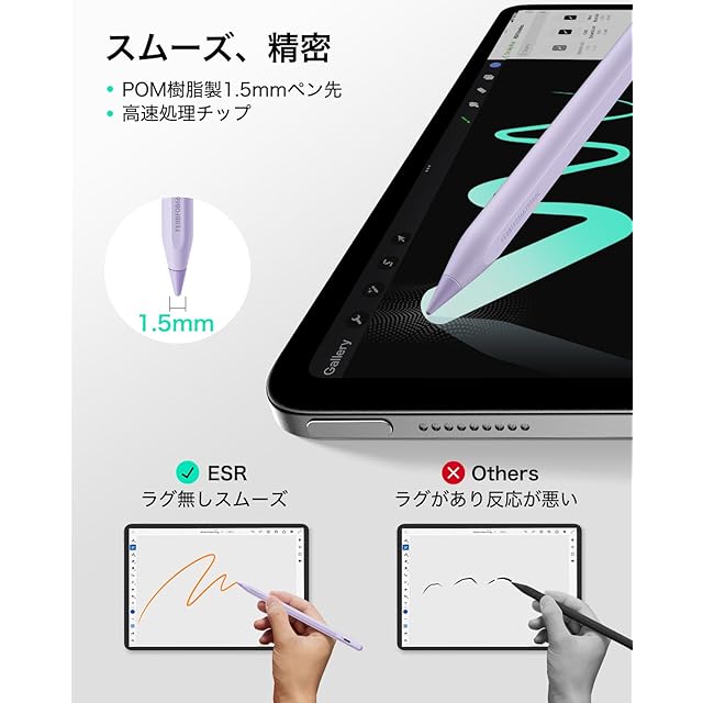 商品名:ESR ipad ペン 用 Find My「探す」機能付きスタイラス 2025-2018, iPad Pro 13/12.9/11-M4 iPad Air 5/4/13/11-M2, iPad 11/10/9/8/7 & iPad Mini 6/5用Find My「探す」機能と傾き感知機能付きipad ペンシル Pro, パープル