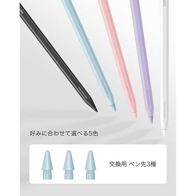 商品名:ESR ipad ペン 用 Find My「探す」機能付きスタイラス 2025-2018, iPad Pro 13/12.9/11-M4 iPad Air 5/4/13/11-M2, iPad 11/10/9/8/7 & iPad Mini 6/5用Find My「探す」機能と傾き感知機能付きipad ペンシル Pro, ブルー