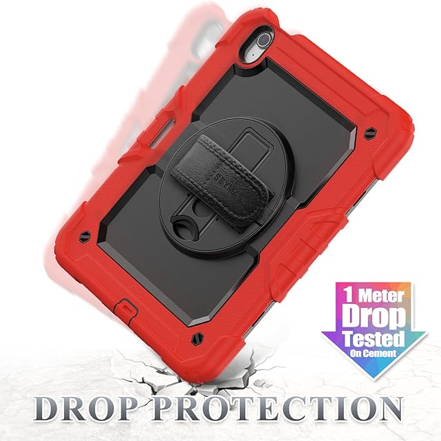 商品名:SEYMAC stock 2025年/2024年 11インチiPad Air(M3/M2)耐衝撃ケース 保護フィルム付き ペン収納 360°回転スタンド ハンドストラップ ショルダーストラップ 全面保護カバー iPad Air 11 2025/2024専用型(レッド)