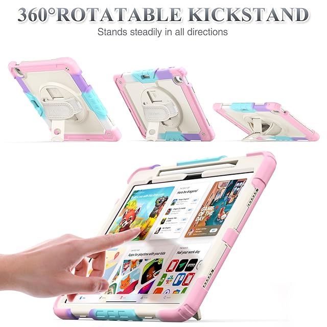 商品名:SEYMAC stock 2025年/2024年 13インチiPad Air(M3/M2)耐衝撃ケース 保護フィルム付き ペン収納 360°回転スタンド ハンドストラップ ショルダーストラップ 全面保護カバー iPad Air 13 2025/2024専用型(色とりどり+ピンク)