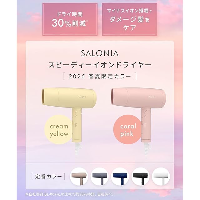 [2025年春夏限定] SALONIA サロニア スピーディーイオン ドライヤー 大風量 速乾 軽量 マイナスイオン ヘアドライヤー SAL24013PM メロウコーラルピンク