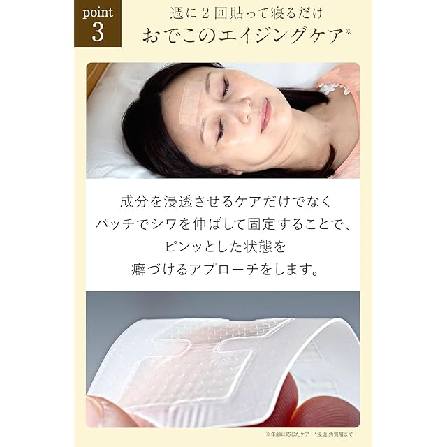 ✅【おでこのシワ対策*²】おでこに特化した特殊パッチが、おでこのシワを対策*²します。さらに、就寝中にヒアルロン酸*³がじっくりと角質層まで浸透します。