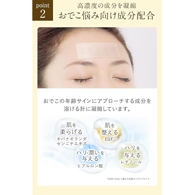 【こんな方におすすめ】おでこのハリ不足、おでこケアを強化したい方におすすめです。マイクロニードルパッチ、ニードルパッチをお探しの方にご好評いただいております。