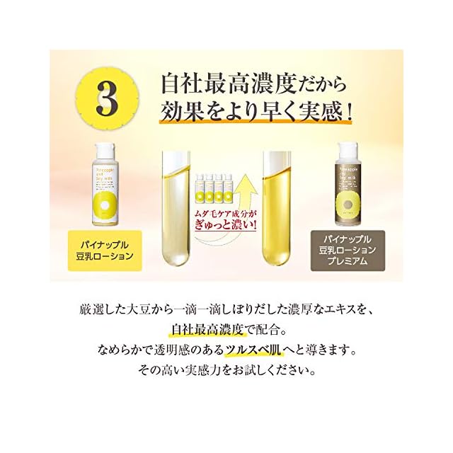 『パイナップル豆乳ローション』シリーズ最高濃度!ワキやスネなどの濃くて太いムダ毛にもしっかりと!