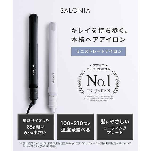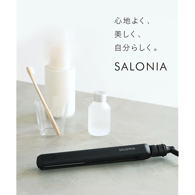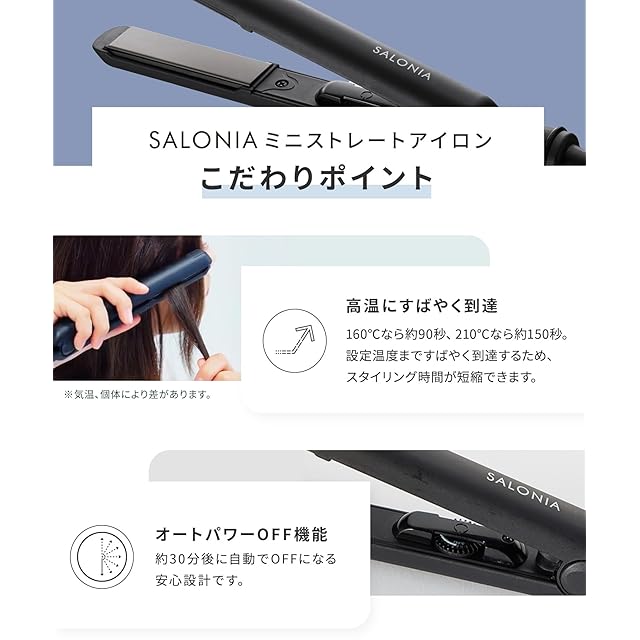 SALONIA サロニア ミニ ストレートアイロン ヘアアイロン 耐熱ポーチ付 SL-010SB ブラック