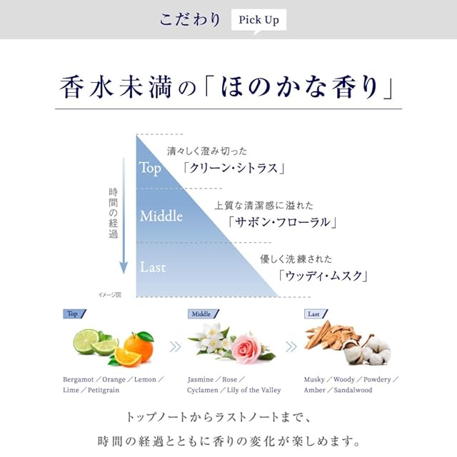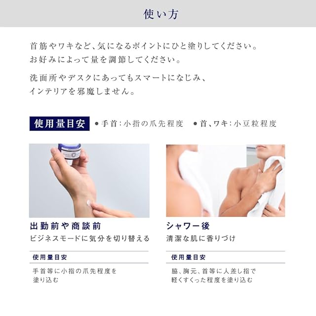 数量限定の香り。なくなり次第終了。<br>香りを練り込んだバーム状のフレグランスで香水ほど主張しない、ほのかな香りを長時間キープ。ビジネスシーンも邪魔しません。<br>爽やかな透明感の奥に穏やかさが宿る「クリア・リネン」の香り。<br><br>Point1<br>香水未満の「ほのかな香り」が長時間持続<br>爽やかな透明感の奥に穏やかさが宿る「クリア・リネン」の香り。トップノートからラストノートまで、時間の経過とともに香りの変化が楽しめます。<br><br>Point2<br>バーム状で程よく香る<br>バーム状のため、つける分量を調整しやすく、香水ほど過剰に香る心配がありません。香りが飛びにくく、長時間持続するのも特徴です。