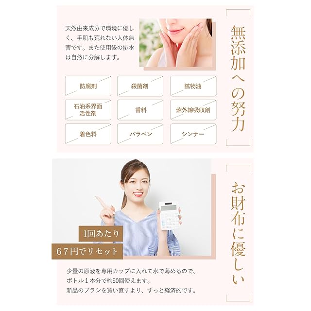 【1本で、約50回分も使え、経済的】少量の原液を専用カップに入れて水で薄めるだけなのでとっても経済的。1本の熊野筆リセッターで約50回分の洗浄ができます。1回あたり67円でメイクブラシをリセット!