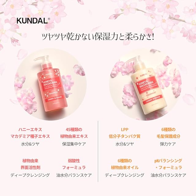 商品名:【クンダル】シャンプー 500ml&トリートメント 500ml スプリング·エディションヘアケアスペシャルセット#チェリーブラッサム KUNDAL SHAMPOO TREATMENT Spring Edition #Cherry Blossom