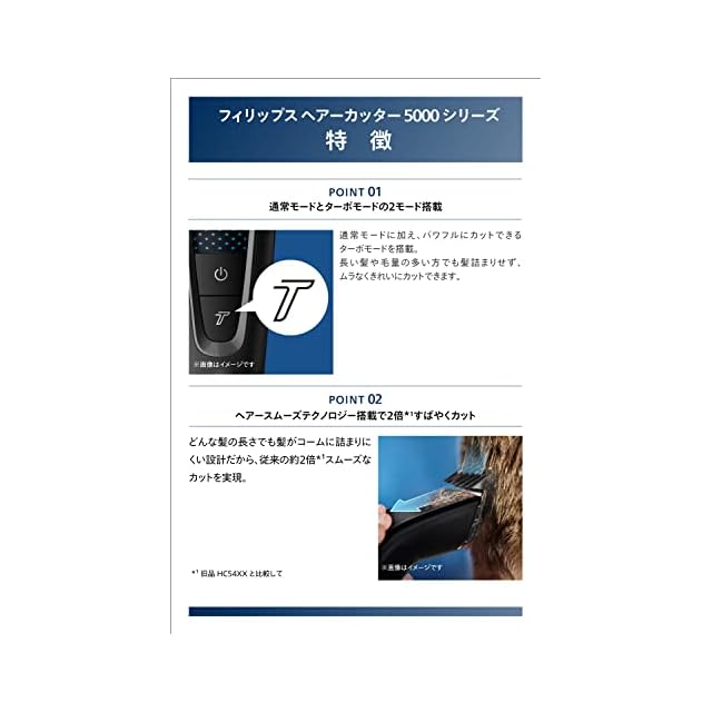 ヘアースムーズテクノロジー搭載で2倍*²すばやくカット*¹ 旧品HC54XXと比較して