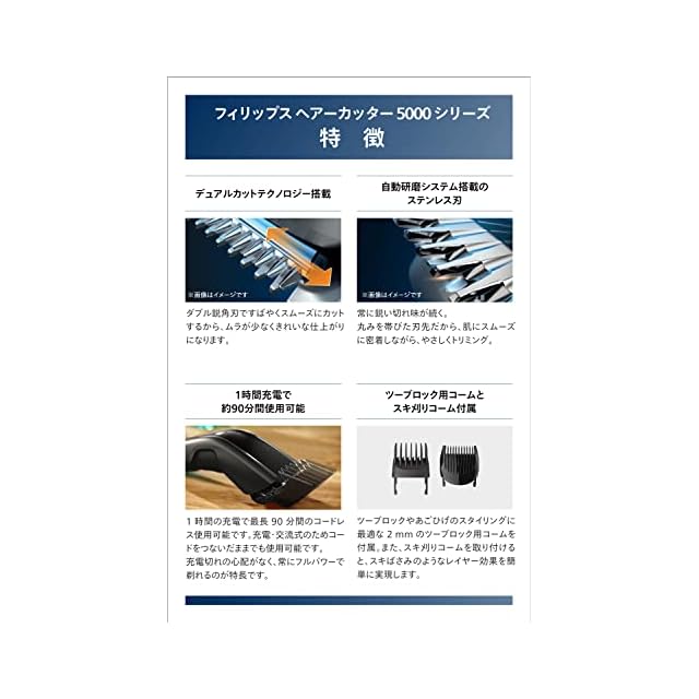 商品名:フィリップス ヘアーカッター5000シリーズ (電動バリカン 充電/交流式 ・ターボモード搭載・27段階調整 3-28㎜) HC5632/17 ブラック