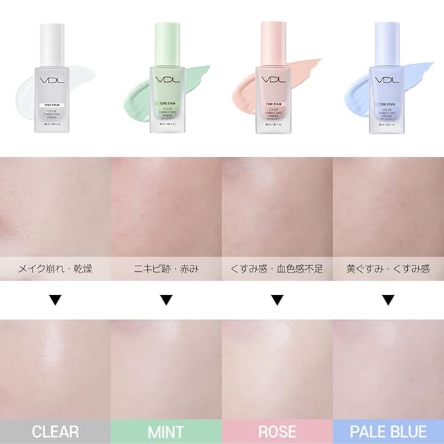 VDL(ヴィディーエル) トーン ステイン カラー コレクティング プライマー 01 ミント 化粧下地 コントロールカラー 赤み ニキビ跡 色ムラ 高保湿 韓国コスメ 30g SPF33 PA++