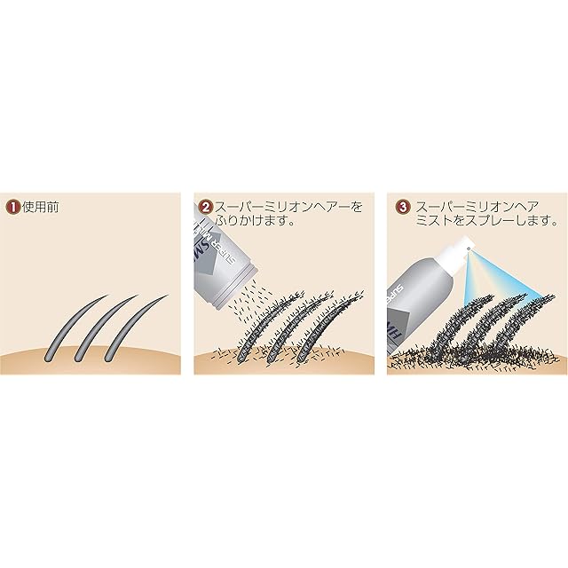 増毛パウダー(植物系抗菌繊維)が静電気で付着して髪を太く見せることにより、自然にボリュームアップしたように見せる商品です。