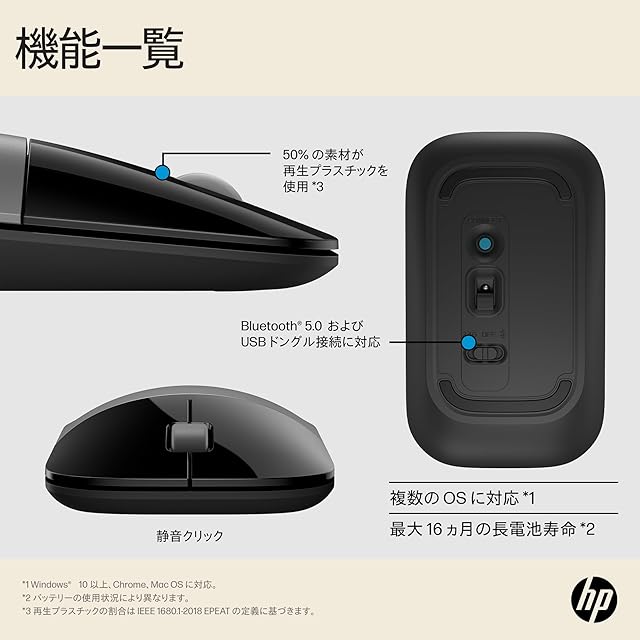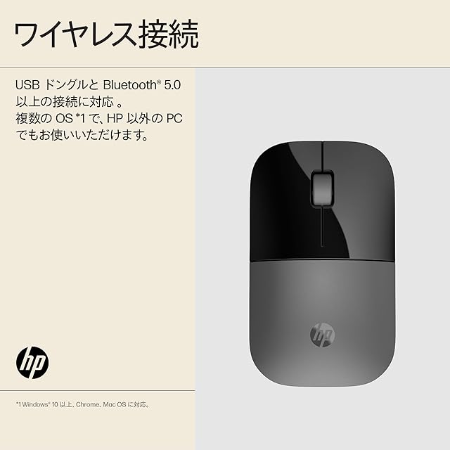 商品名:HP ワイヤレスマウス 無線 マウス 静音 Z3700 デュアルワイヤレスマウス Windows Mac ChromeOS Bluetooth接続 2.4Ghzドングル 対応 静音マウス(シルバー)【国内正規品】