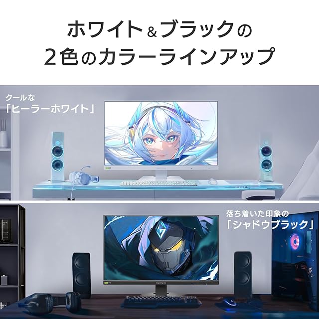 【ホワイト&ブラックの2色のカラーラインアップ】純白の光がゲームの世界を照らす「ヒーラーホワイト」、暗闇の中から勝利を掴む「シャドウブラック」。デザインもスペックも妥協しないあなたへお届けする、2色のカラーラインアップ。