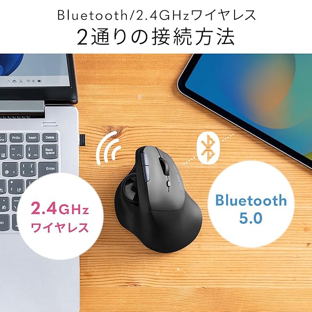 商品名:サンワダイレクト トラックボール エルゴノミクス マウス 静音 無線 Bluetooth 2.4GHz 【戻る/進むボタン搭載】 充電式 400-MAWBTTB190BK
