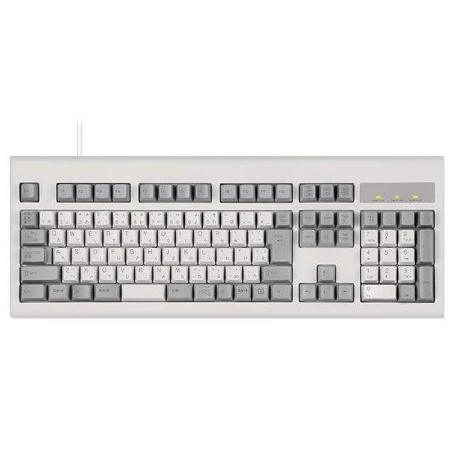 【昔のキーボード】往年のクラシックスタイルのキーボードです。色合い、キー配列など昔ながらのキーボードです。 コンパクトになるにつれ、失われていったキーも残っています。ショートカットなどを多用するユーザーはキーボードのポテンシャルを引き出すことができます。455x170x45mm/ケーブル長:1.8M/テンキー搭載、オフィスでの使用に適した有線スタンダードタイプキーボード。