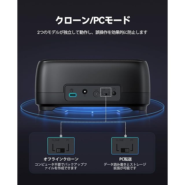 【強力な機能】 - クローンスタンドはオフラインクローンをサポートし、デュアル20TB超大容量同時転送、LEDインジケータライト監視付き。作業せずに10分後にスリープモードを自動的に入ります。